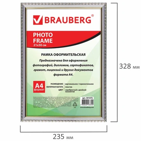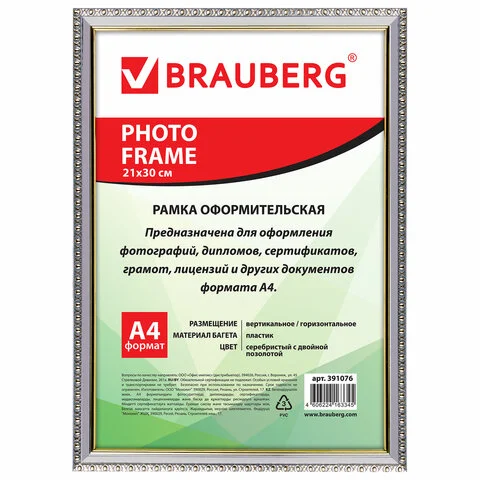 Рамка Brauberg Hit5 серебро с двойной позолотой, 21х30см, пластик