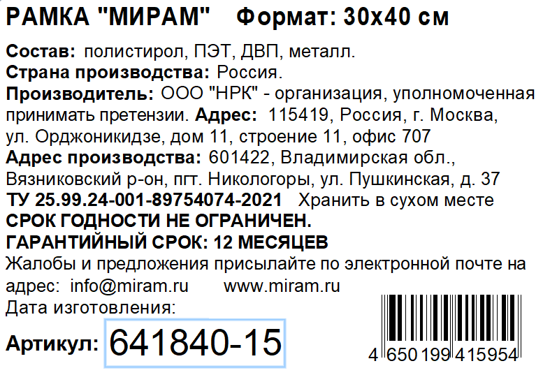 Фоторамка МИРАМ может быть использована для оформления семейных фотографий и детских рисунков, офисной информации и рекламных материалов, произведений изобразительного искусства. Она имеет стильный и элегантный внешний вид, поэтому гармонично впишется в любой интерьер помещения как жилого, так и общественного назначения (салона красоты, офиса). Такой аксессуар поможет создать в помещении теплую и уютную атмосферу.