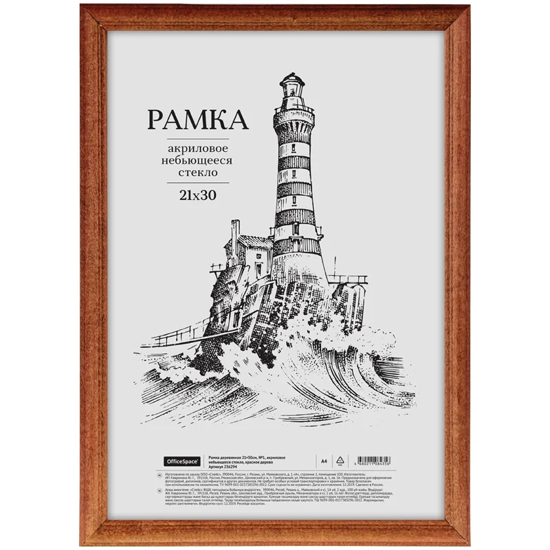 Рамка Officespace №1 красное дерево, 21х30см, дерево, стекло пластик.