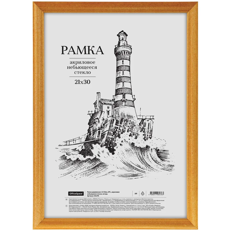 Рамка Officespace №1 янтарь, 21х30см, дерево, стекло пластик.