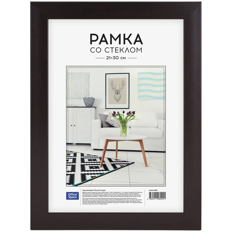 Рамка Officespace №10 черная, 21х30см, пластик