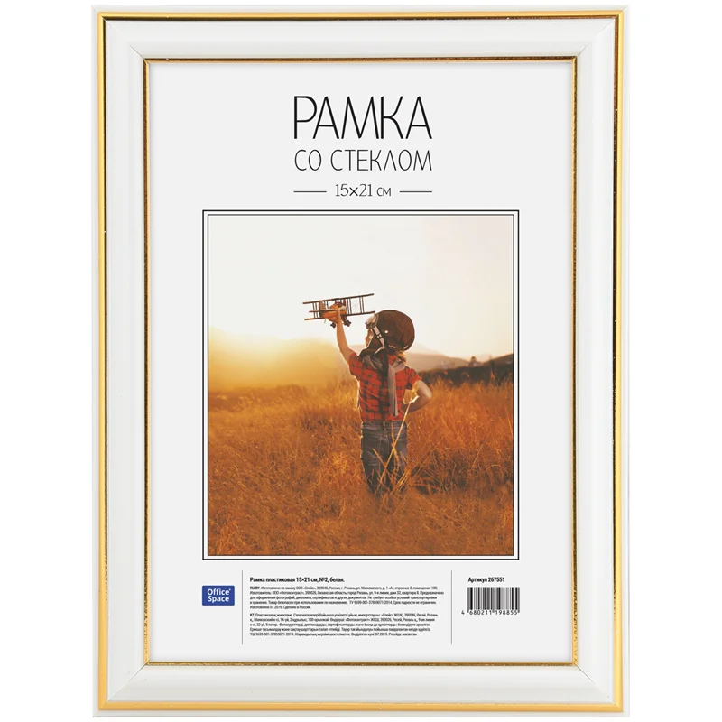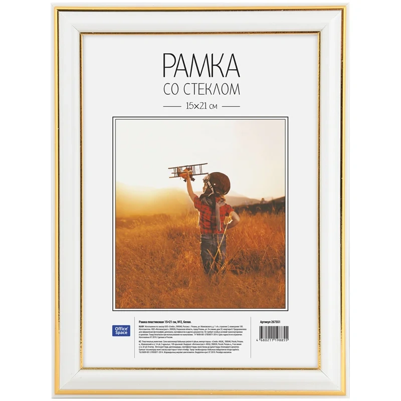 Рамка Officespace №2 белая, 15х21см, пластик