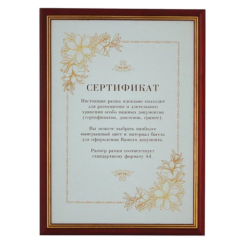 Деревянная рамка со стеклом отлично подходит для размещения фотографий, дипломов, сертификатов, грамот, лицензий и других документов формата А4.