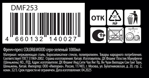 Френч-пресс Color&Wood серо-зеленый 1000мл. Отличный выбор для любителей свежего и ароматного чая. Он станет прекрасным дополнением к вашей коллекции посуды.