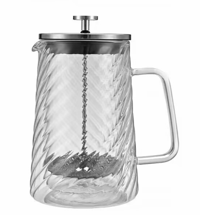 Френч-пресс Kukina Raffinata Spectrum с двойными стенками, 1л изготовлен из жаропрочного стекла, высококачественной нержавеющей стали и пластика. Жаропрочное стекло может выдерживать температуру до 180C. Двойные стенки из жаропрочного стекла позволяют дольше сохранить температуру напитка, при этом внешняя стенка нагревается незначительно.