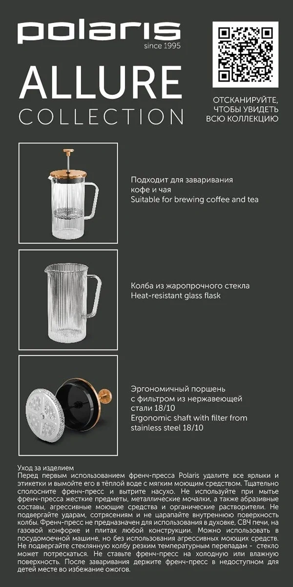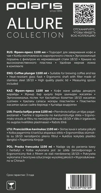 | Комплектация | френч-пресс - 1 шт.; мерная ложка - 1 шт. |