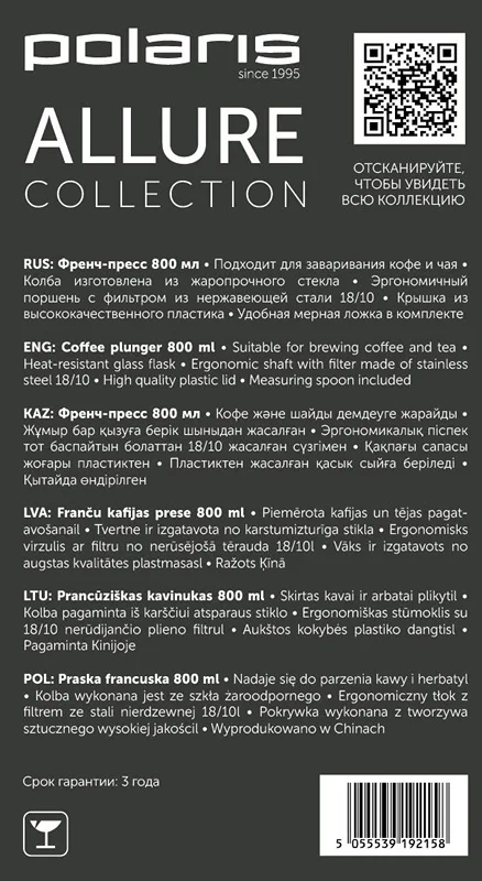 Френч-пресс Polaris Allure, 800мл