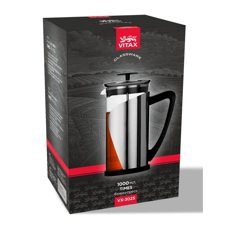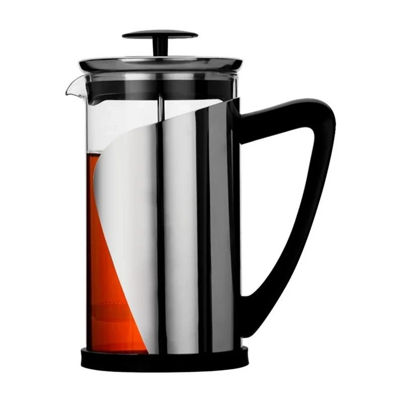 Дизайн френч-пресса выполнен в скандинавском стиле. Колба изготовлена из высококачественного, особо прочного, термостойкого боросиликатного стекла. Поршень и фильтр изготовлены из высококачественной пищевой нержавеющей стали 18/10. Ненагревающаяся ручка и термо-сберегающая крышка из пищевого пластика. Корпус и верхняя часть крышки изготовлены из нержавеющей стали с зеркальной полировкой. Подходит для мытья в посудомоечной машине. Объем 1000 мл.