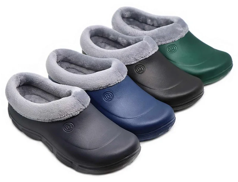 Сабо мужские Eva утепленные с мехом в ассортименте представляют собой вариант традиционных калош без задника. Обувь изготавливается из этиленвинилацетата (EVA), при застывании образующего плотный, легкий и довольно мягкий полимер, принимающий при носке форму ноги. Материал обладает низкой теплопроводностью, поэтому даже осенью, попав в холодную лужу, вы не почувствуете изменения температуры. Изнутри сабо отделаны теплым материалом, надежно зафиксированном на бортиках мягким валиком. Он прекрасно впитывает влагу, не позволяя ногам вспотеть и замерзнуть. Изделие легко отмывается от грязи и пыли, не растрескивается на морозе и прекрасно сохраняет тепло внутри. Сабо предназначены для прохладного времени года.