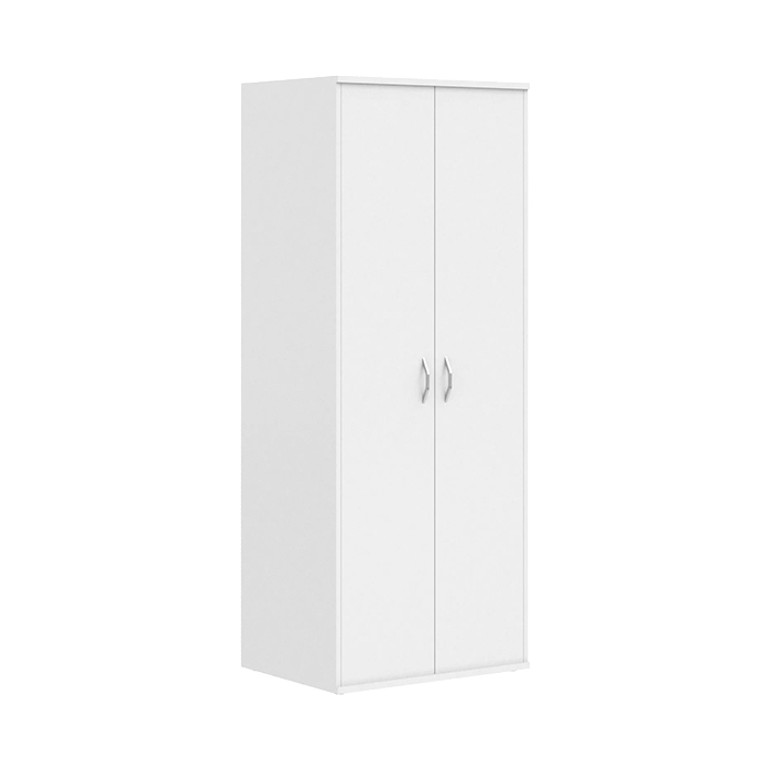 Широкий и высокий гардероб IMAGO для офисного или домашнего использования. Размеры - 770х1975х580 мм, цвет - Белый. Двустворчатый гардероб, закрывающийся на дверцы из ЛДСП. Шкаф оснащен регулируемыми опорами для компенсации неровностей пола.