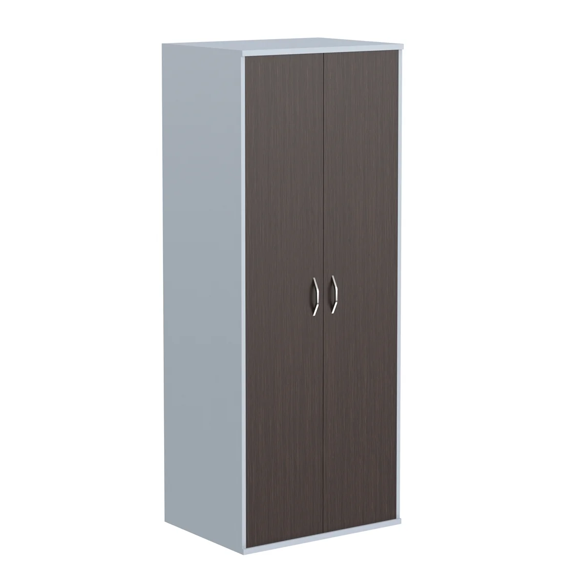 Широкий и высокий гардероб IMAGO для офисного или домашнего использования. Размеры - 770х1975х580 мм, цвет каркаса - Металлик, цвет дверей - Венге Магия. Двустворчатый гардероб, закрывающийся на дверцы из ЛДСП. Шкаф оснащен регулируемыми опорами для компенсации неровностей пола.