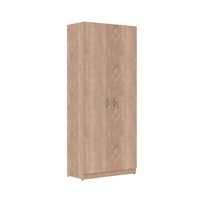 Широкий и высокий гардероб SIMPLE для офисного или домашнего использования. Размеры - 770х1815х375 мм, цвет - Дуб Сонома Светлый. Двустворчатый гардероб, закрывающийся на дверцы из ЛДСП. Надежная защита торцевых поверхностей - кромка ПВХ. Шкаф оснащен регулируемыми опорами для компенсации неровностей пола.