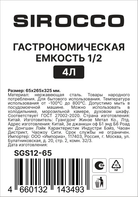 Поддон нержавеющая сталь 1/2-65мм 4л можно использовать для хранения, приготовления или подачи пищи. Глубины достаточно для запекания птицы, мяса, хлеба. Внутри емкости сохранится вкусный соус, но при этом не вытечет внутрь духовки. Размеры и небольшой вес гастроемкости позволяют использовать ее и в качестве подноса. Поставьте на нее посуду с горячим или холодным блюдом, бокалы, тарелки и многое другое. Они не соскользнут, благодаря высоким бортикам. Емкость изготовлена из нержавеющей стали высокого качества. Материал выбран не случайно. Он не впитывает запахи, легко моется, не царапается и на долгое время сохраняет свой привлекательный внешний вид. Сталь быстро прогревается, а потому на приготовление блюда уйдет меньше времени. При этом она не пригорает, но для продления срока службы рекомендуется использовать бумагу для выпечки, фольгу и другие средства, облегчающие готовку.