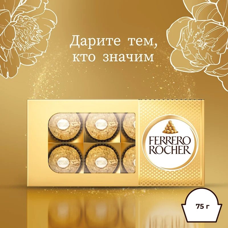 Набор конфет Ferrero Rocher хрустящие из молочного шоколада, 75г