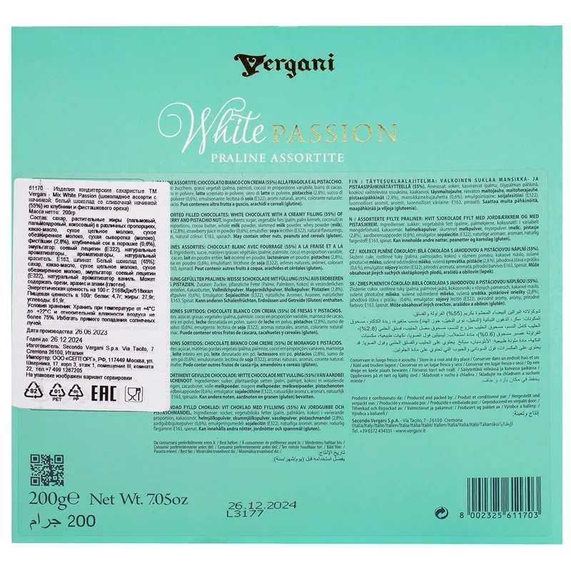 Набор шоколадных конфет Vergani Mix White Passion Ассорти, 200г