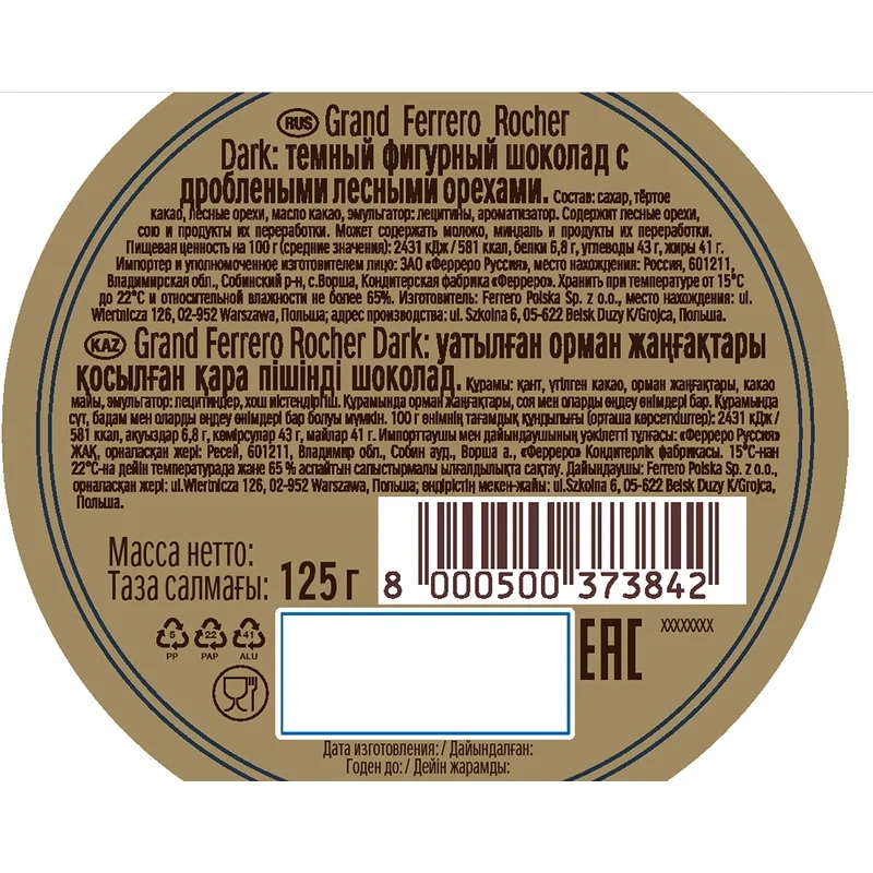 Шоколад темный Ferrero Rocher Grand фигурный, 125г