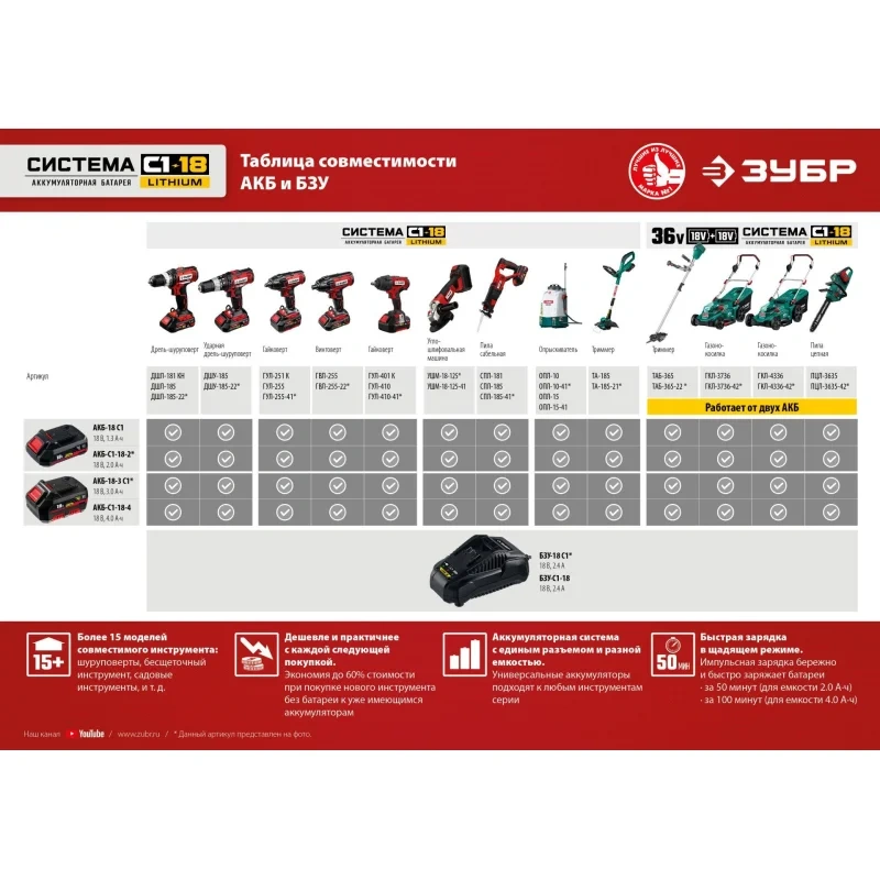 Гайковерт аккумуляторный ЗУБР ГУЛ-255-41 . Мощное изделие для заворачивания/отворачивания крепежа (при сборке/разборке металлических конструкций, снятии/установке колес автомобиля и т. д. ) благодаря крутящему моменту 250 Нм. Большой крутящий момент и увеличенная емкость аккумулятора позволяет использовать его для тяжелых работ в любой области. В комплекте зарядное устройство и аккумулятор (4 Ач).