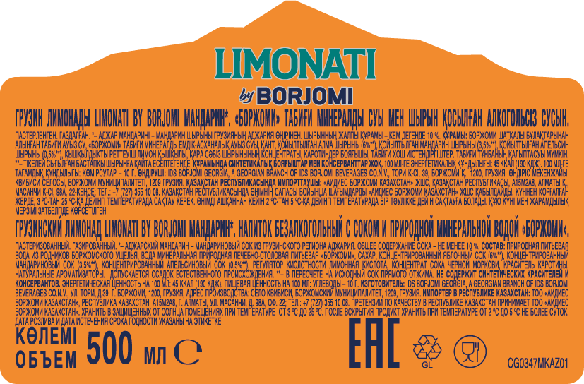 Напиток Borjomi Limonati Аджарский мандарин газированный, 500мл x 12 шт