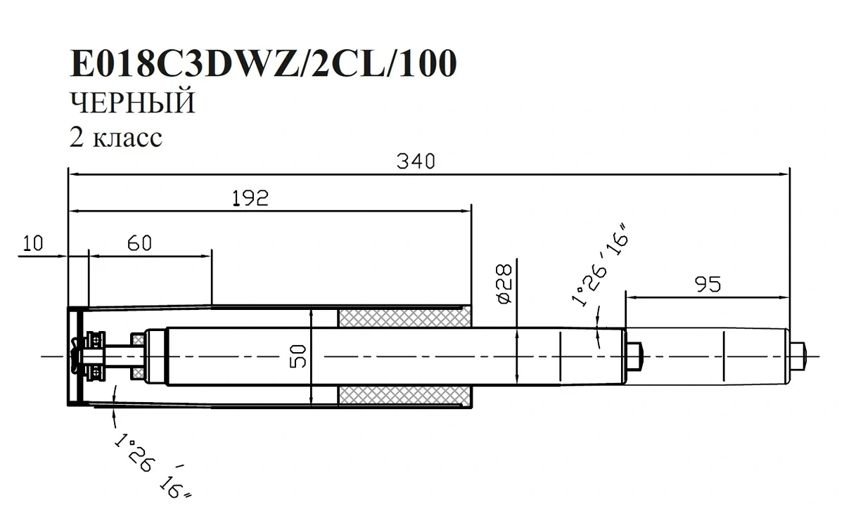 | Особенности | длина в открытом виде 340 мм, ход штока 95 мм, d50 мм, класс 2 |