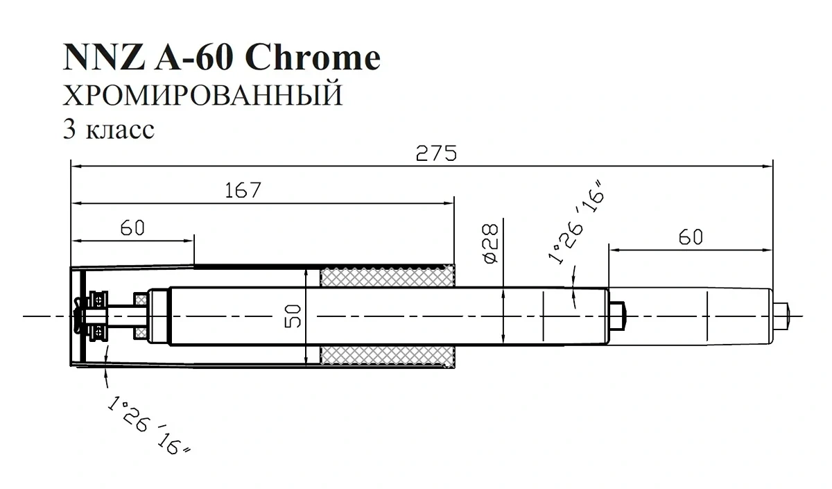 Газлифт Бюрократ NNZ A-60 CH NNZ A-60 CHROME хром для офис.кресла 50мм
