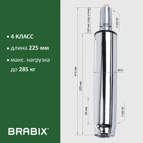 Газлифт прочный BRABIX HD-140 стандартный, ХРОМ, в открытом виде 413 мм, d 50 мм, класс 4, 533078