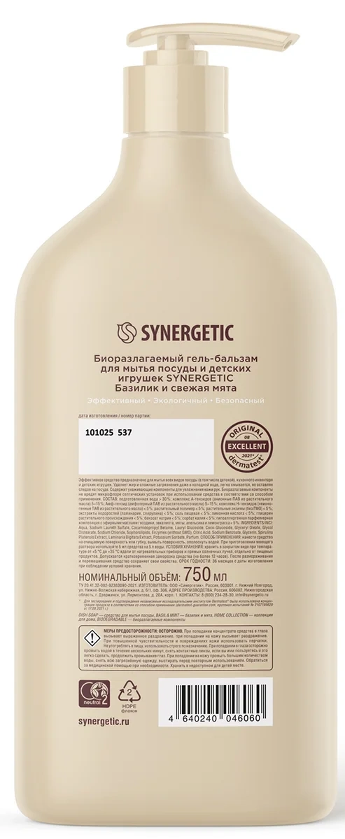Отзывы о «Гель-бальзам для мытья посуды Synergetic Базилик и мята, 750мл»