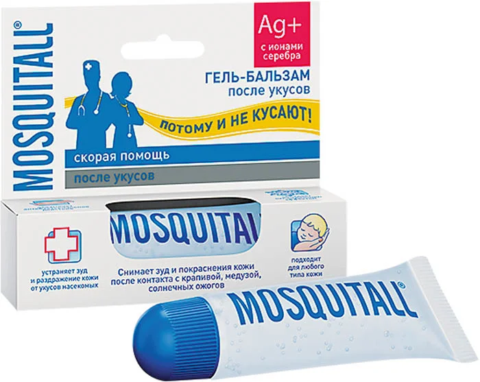 Гель-бальзам после укусов MOSQUITALL Скорая помощь, 10мл успокаивает раздраженную кожу, снимает покраснения и высыпания. Средство можно использовать после укусов комаров, мошек, слепней, ос, а также после ожогов крапивой или другими колючими растениями. Продукт поможет снять аллергическую реакцию, устранить зуд и жжение. Он легко наносится и быстро впитывается, исключая неприятные ощущения. В состав входит бисаболол, который оказывает противовоспалительное действие и стимулируется заживление эпидермиса. Гель-бальзам заключен в компактный флакон, благодаря чему его удобно брать с собой на прогулку в парк или вылазку на природу.MOSQUITALL – динамично развивающийся бренд. Более чем пятнадцатилетний опыт производства, использование мирового научного опыта, инновационных химико-биологических разработок и результатов доклинических исследований сделали бренд MOSQUITALL настоящим профессионалом в борьбе с насекомыми. MOSQUITALL консультируют ученые крупнейших научно-исследовательских центров, таких как МГУ им. Ломоносова и НИИ Дезинфектологии, Swiss Laboratory Defence AG. Все средства бренда MOSQUITALL прошли экспертизу в НИИ Дезинфектологии и зарегистрированы Роспотребнадзором. Разнообразие ассортиментных групп бренда MOSQUITALL позволяет подобрать необходимые средства уничтожения и защиты от насекомых для любой ситуации: для использования в помещениях или на открытом воздухе, во время отдыха в городском парке или в лесу, на пикнике или в походе. Понятная и удобная система цветового кодирования и навигации по ассортименту продукции сделают выбор подходящего средства быстрым и легким.