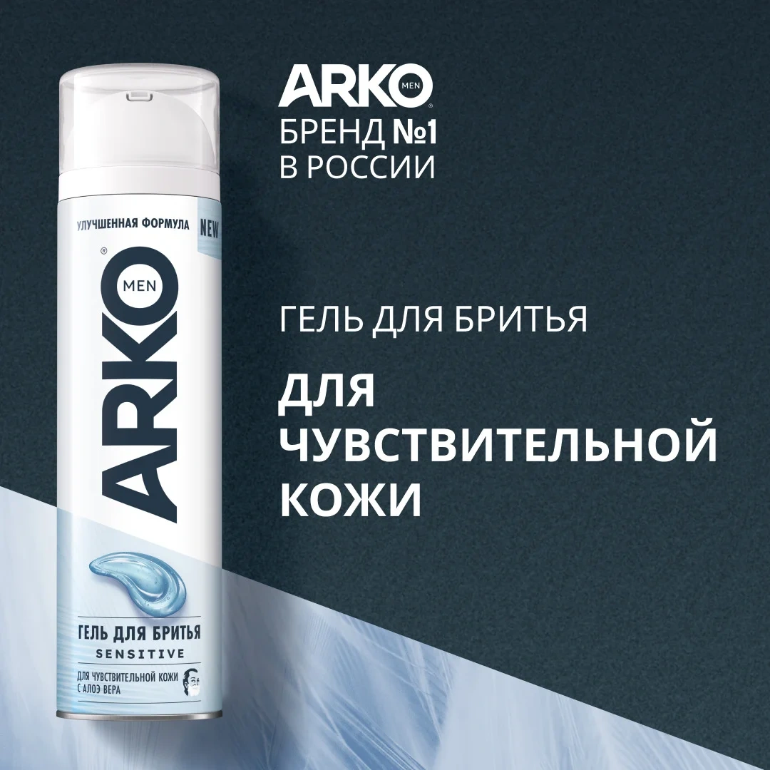 Гель для бритья Arko Men Sensitive, объемом 200 мл, подходит даже для самой чувствительной кожи и помогает снизить риск раздражения и жжения.
