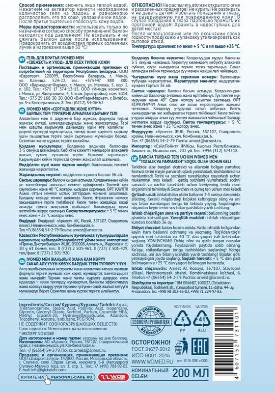 Гель для бритья Ivomed Men Свежесть и уход, 200мл