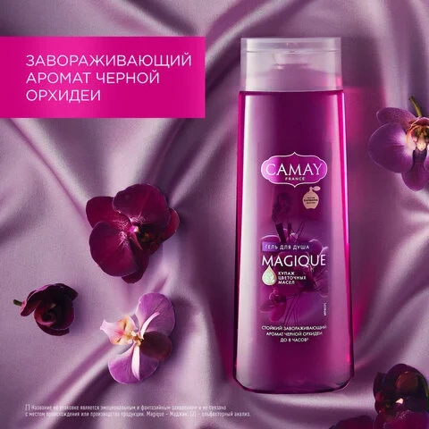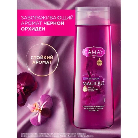 Этот чувственный, завораживающий аромат геля для душа Camay Магическое заклинание собрал в себе нотки редкой черной орхидеи и насыщенные тона темных цветов. Попробуйте настоящее произведение парфюмерного искусства.