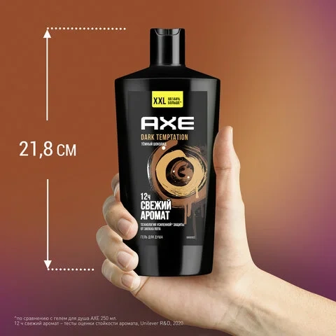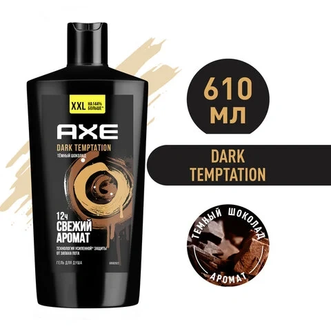 Гель для душа 610 мл, AXE 'Dark temptation' (Черный шоколад), защита от запаха пота