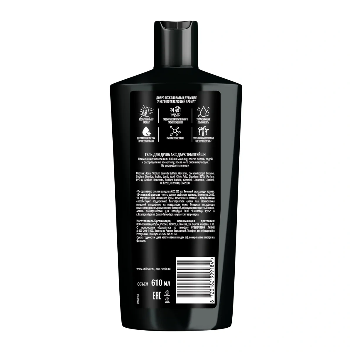 Гель для душа Акс Dark Temptation c чувственным, волнующим ароматом со сладкими оттенками белого, молочного и горького шоколада точно не оставит ее равнодушной. Эффективно и без лишних усилий очищает кожу, дезодорирует ее и обеспечивает антибактериальную защиту. Теперь его точно хватит надолго. Акс – самый популярный мужской бренд в мире, знаменитый своими эксклюзивными ароматами и удивительными рекламными кампаниями. Каждый аромат Акс – это произведение искусства, созданное при участии легендарного парфюмера Энн Готлиб.