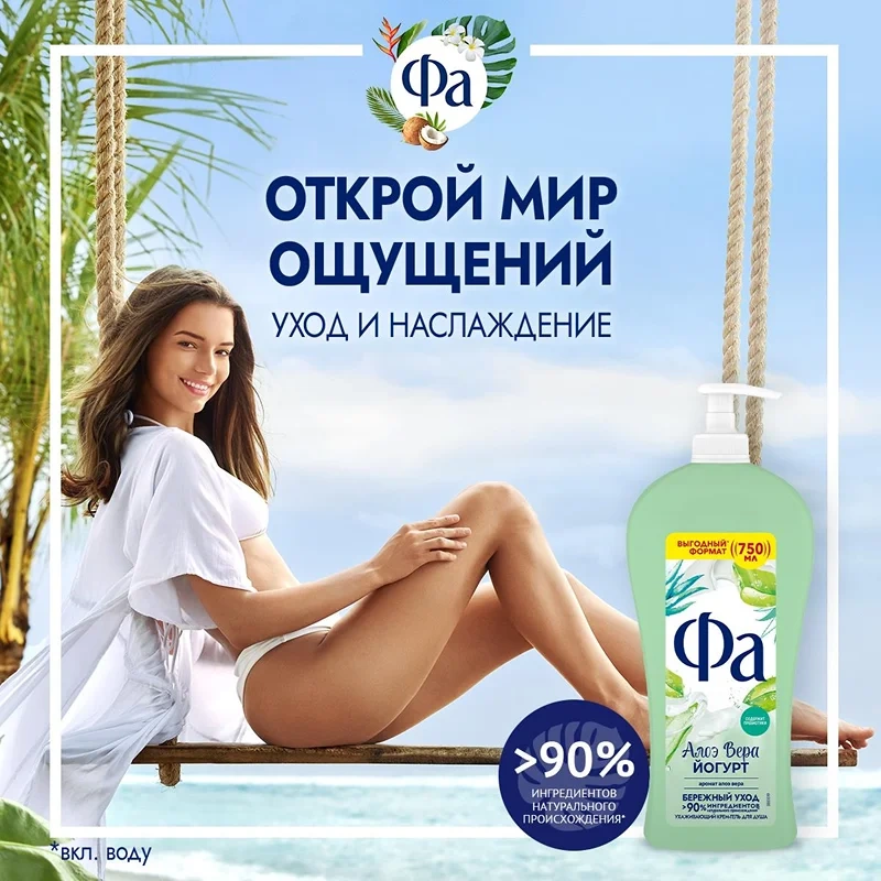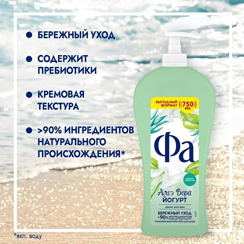 Погрузитесь в мир нежного ухода и изысканных ароматов с Фа парфюмированным крем-гелем для душа серии Йогурт Алоэ Вера - продуктом, созданным специально для женщин, стремящихся к идеальной чистоте и здоровью кожи. Этот гель сочетает в себе мягкие очищающие свойства и приятный аромат алоэ вера, который окутает вас атмосферой свежести и релаксации. Крем-гель имеет насыщенную кремовую текстуру, которая нежно обволакивает кожу, увлажняя и питая её. Формула обогащена пребиотиками, которые поддерживают естественный баланс микрофлоры кожи, обеспечивая ей дополнительный уход и защиту. Более 90% ингредиентов имеют натуральное происхождение, что делает этот гель безопасным и эффективным для ежедневного использования. Преимущества: - Бережный уход: гель обеспечивает глубокое увлажнение и питание кожи, делая её мягкой и гладкой. - Парфюмерная композиция: легкий аромат алоэ вера создает ощущение свежести и чистоты. - Содержание пребиотиков: помогает поддерживать здоровье кожи, укрепляя её защитные функции. Фа Крем-гель для душа Йогурт Алоэ Вера станет незаменимым помощником в вашем утреннем или вечернем ритуале, помогая сохранять красоту и здоровье вашей кожи каждый день. Особенности: - Подходит для всех типов кожи. - Экономичный расход благодаря густой консистенции. - Удобная упаковка с дозатором. Насладитесь Фа Гелем для душа Йогурт Алоэ Вера и подарите своей коже заботу!