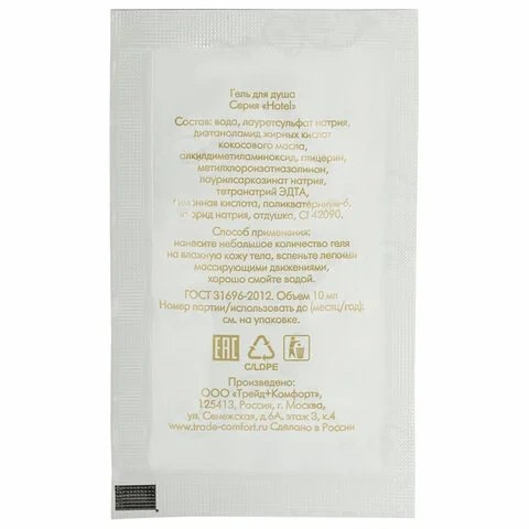 Гель для душа одноразовый 10 мл, КОМПЛЕКТ 500 шт., HOTEL, саше, флоупак, 2000113