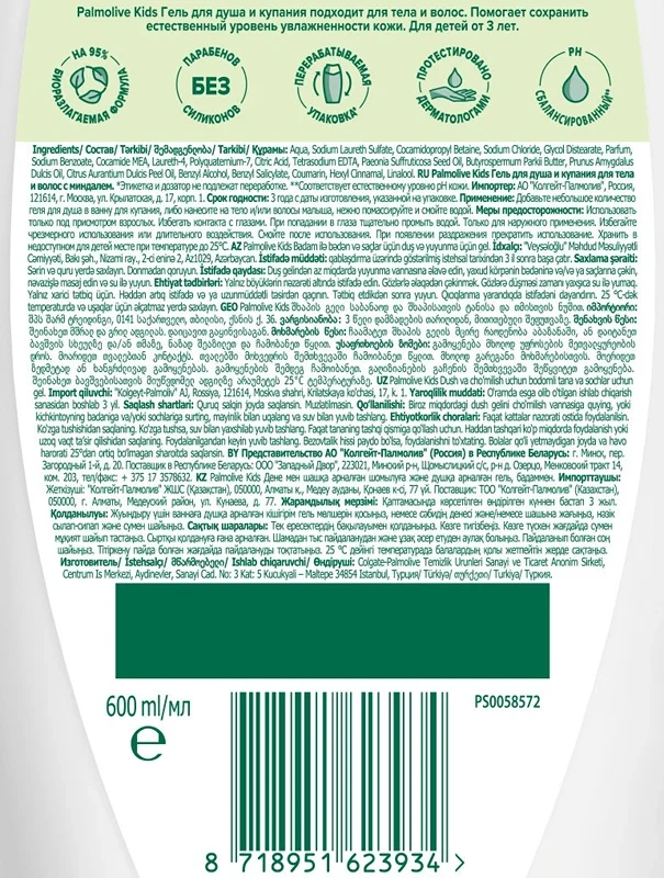 Гель для душа Palmolive Kids с маслом миндаля, 600мл