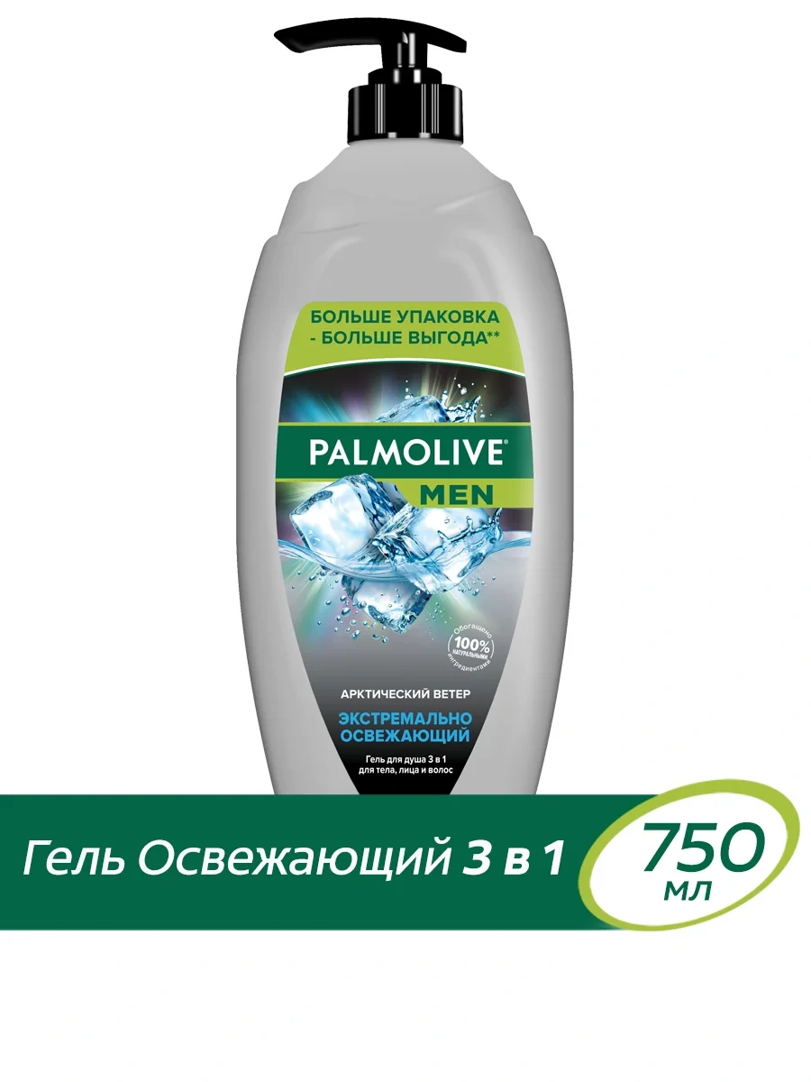 Гель для душа Palmolive Men Экстремально Освежающий Арктический Ветер 3 в 1, 750мл