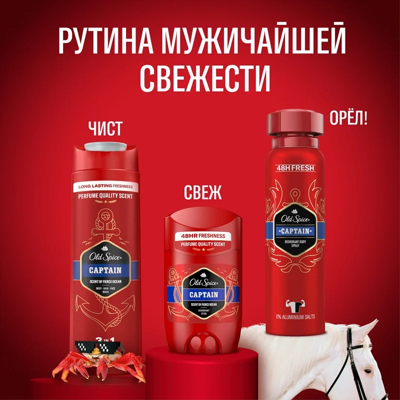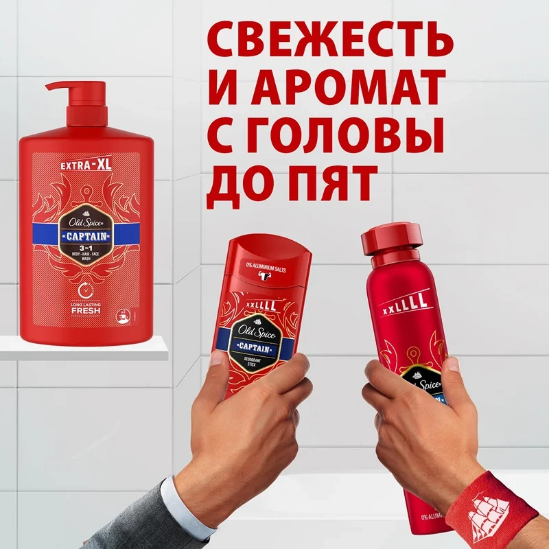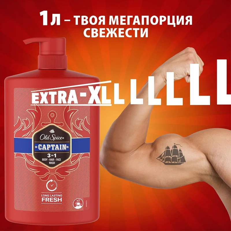 Представь, что мир, который ты жаждешь покорить, – это устрица. Так вот, мужской гель для душа Old Spice (Олд Спайс) Captain 3в1 (для тела, волос и лица) – это нож, который поможет раскрыть створки ее раковины, секретное оружие, которое не знает неудач. Даже когда ты не покоряешь открытые моря, ты покоряешь помещения, наполняя их свежим чистым ароматом цитруса, сандалового дерева, соленых брызг океана и попутного ветра. Хочешь, чтобы твоя эскадра побеждала по всем фронтам? Проще простого – надо просто найти именно свой аромат! Освежающая пена геля для душа и шампуня Old Spice в extra-XL упаковке 1 л борется с неприятными запахами, наполняя тебя капитанской решительностью, смелостью и отвагой с чистыми зелеными нотами цитрусовых. Зарядись энергией и мощью Old Spice с самого утра – попробуй гель для душа+шампунь 3в1 Captain, затем нанеси дезодорант из этой же коллекции (стик или спрей), чтобы потопить неприятный запах пота. Преимущества: - Гель для душа+шампунь 3в1 - для тех, у кого есть тело, волосы и лицо; - До 100 дней свежести; - Грязь и запах смывает, мужичайший аромат и свежесть оставляет; - Динамичный яркий аромат, который будет с тобой весь день.