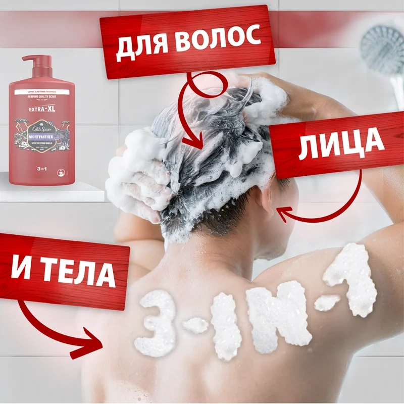 Гель для душа + шампунь мужской Old Spice Night Panther 3в1 c цитрусом и ванилью, 1л