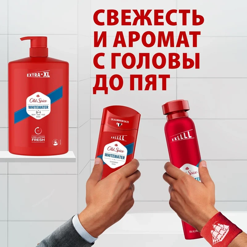 Многие считают, что вода — самый мощный элемент на Земле. Считают-то, конечно, многие, но все они неправы: во-первых, вода не является элементом, а во-вторых, уран-235 совершенно точно мощнее. Но то, что Old Spice (Олд Спайс) Whitewater обладает наисвежайшим ароматом – научно доказанный факт, ведь миллионы крутых парней во всем мире испытывают его на прочность каждый день. Гель для душа+шампунь Old Spice Whitewater 3в1 (для тела, волос и лица) – это тот самый секретный компонент эликсира мужественности! Попробуй его уже сегодня и убедись, что динамичный аромат с яркими нотами лимона не только защитит тебя от неприятного запаха на весь день, но и выкрутит на максималки твою уверенность в себе. Кстати, если тебе нужна мегатонна свежести, выбирай упаковку размера extra-XL – это целый 1 л, которого тебе хватит надоооооолго. Хочешь ощущать дичайшую энергию Old Spice 24/7? Попробуй мужской гель для душа+шампунь 3в1 Old Spice Whitewater, а затем используй дезодорант из этой же коллекции, чтобы прокачать свой день! Преимущества: - Гель для душа+шампунь 3в1 - для тех, у кого есть тело, волосы и лицо; - До 100 дней свежести; - Грязь и запах смывает, мужичайший аромат и свежесть оставляет; - Динамичный яркий аромат, который будет с тобой весь день.