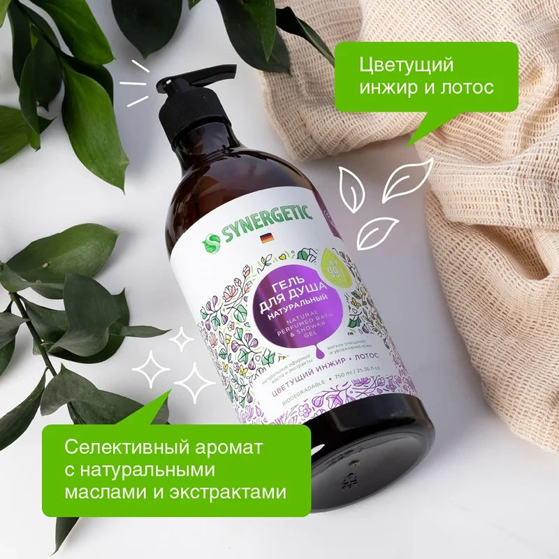 Гель для душа Synergetic Цветущий инжир и лотос увлажняющий, 750мл