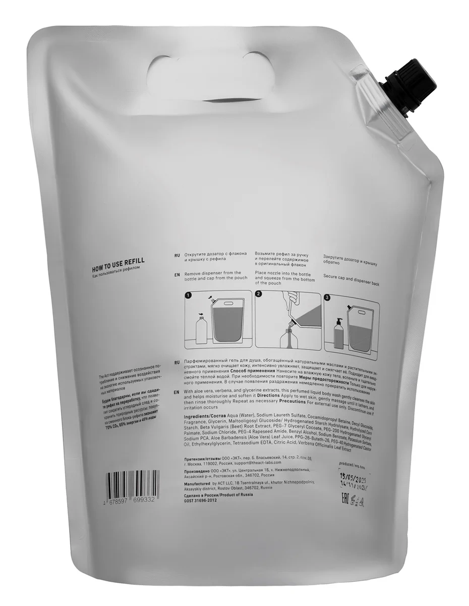 Гель для душа The Act Zest of verbena алоэ и вербена рефилл, 4л