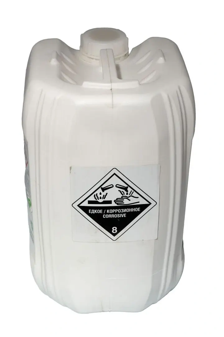 Гидроксид натрия 15-30 %: эмульгирует жиры, отделяет и расщепляет крахмал и белок. Поддерживает оптимальный уровень pH для мытья. Комплексообразователи 5-15 %: смягчают воду, повышают эффективность очистки, предотвращают образование кальциевых отложений. Поликарбоксилаты менее 5 %: диспергируют грязь и отложения.
