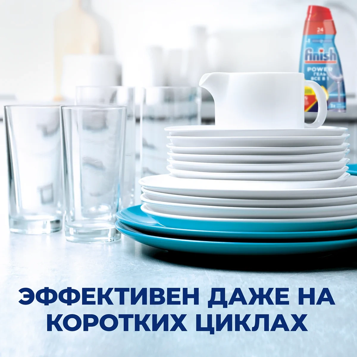 Гель для мытья посуды в посудомоечной машине Finish All in One с быстрорастворимой формулой обеспечивает ослепительный блеск и чистоту посуды даже на коротких циклах и при низкой температуре. Благодаря функции защиты стеклянной посуды от коррозии Ваша посуда сохранит ослепительное сияние надолго.