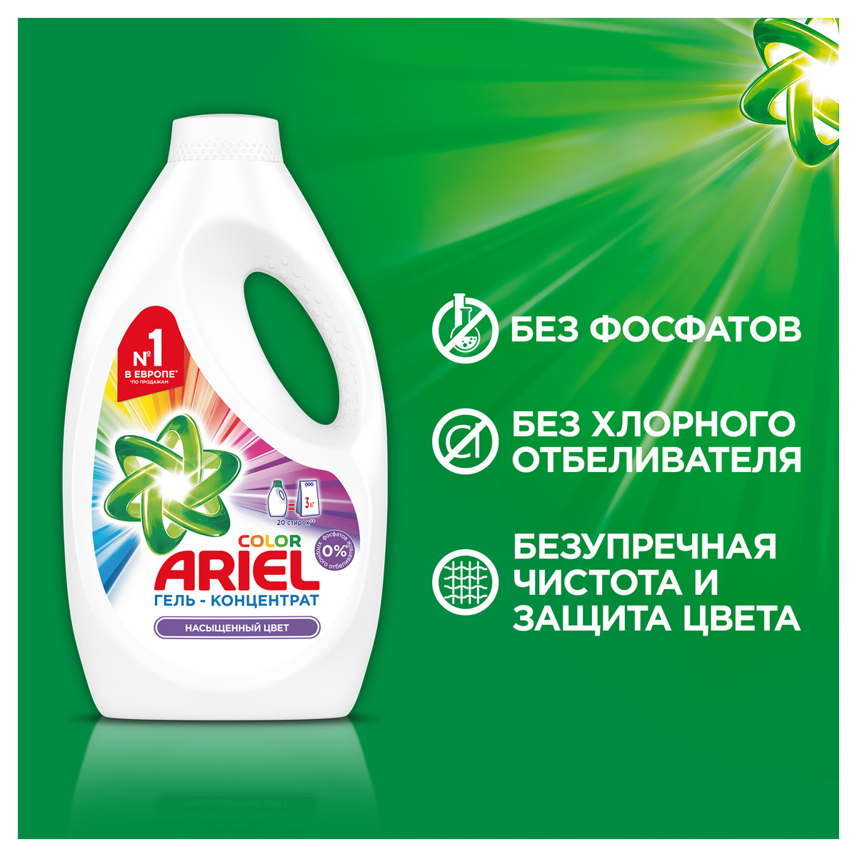 Жидкий Гель-концентрат Ariel Color для цветного белья превосходно и бережно отстирывает загрязнения на одежде и белье, сохраняя их яркость и цвет. В отличие от обычного стирального порошка, Ариэль гель сразу попадает в барабан стиральной машины, и быстро растворяется в воде. Он эффективен на коротких циклах стирки и беспощадно удаляет пятна и грязь, вызывающие неприятные запахи, придавая одежде сияющую чистоту и приятный аромат свежести.