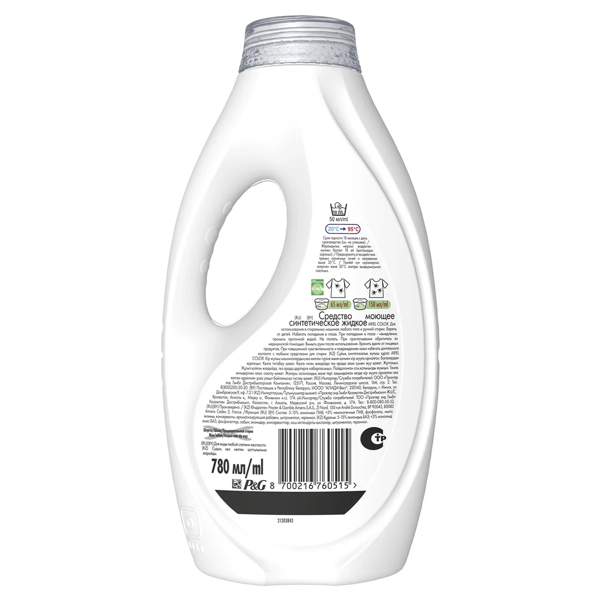 Гель для стирки Ariel Color 780мл предназначен для стирки цветного и белого белья. Жидкий порошок Ariel превосходно и бережно отстирывает загрязнения на одежде и белье, сохраняя их яркость и цвет. В отличие от обычного порошка, гель для стирки белья Ariel сразу попадает в барабан стиральной машины, и быстро растворяется в воде. Он эффективен на коротких циклах стирки и беспощадно удаляет пятна и грязь, вызывающие неприятные запахи, придавая одежде сияющую чистоту и приятный аромат свежести. Преимущества жидкого стирального порошка Ariel: превосходное удаление пятен с первой стирки даже при температуре 30С; не оставляет следов на одежде; сохраняет яркость цветных вещей; помогает справиться с застарелыми пятнами; не дает грязи и пятнам въедаться в структуру волокон. При наличии трудновыводимых пятен обработайте их сначала гелем для стирки Ariel, а затем загрузите одежду в стиральную машину. Для наилучших результатов добавьте мерный колпачок с гелем для стирки в барабан стиральной машины.