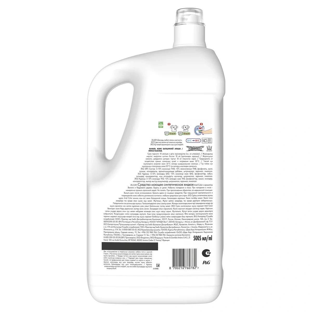 Гель для стирки Ariel ваниль и кедровое дерево 5005мл предназначен для стирки цветного и белого белья. Жидкий порошок Ariel превосходно и бережно отстирывает загрязнения на одежде и белье, сохраняя их яркость и цвет. В отличие от обычного порошка, гель для стирки белья Ariel сразу попадает в барабан стиральной машины, и быстро растворяется в воде. Он эффективен на коротких циклах стирки и беспощадно удаляет пятна и грязь, вызывающие неприятные запахи, придавая одежде сияющую чистоту и приятный аромат свежести. Преимущества жидкого стирального порошка Ariel: превосходное удаление пятен с первой стирки даже при температуре 30С; не оставляет следов на одежде; сохраняет яркость цветных вещей; помогает справиться с застарелыми пятнами; не дает грязи и пятнам въедаться в структуру волокон. При наличии трудновыводимых пятен обработайте их сначала гелем для стирки Ariel, а затем загрузите одежду в стиральную машину. Для наилучших результатов добавьте мерный колпачок с гелем для стирки в барабан стиральной машины.