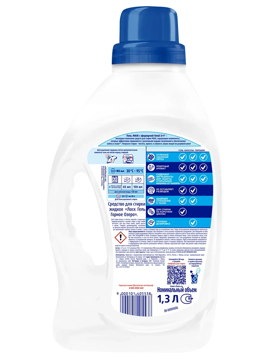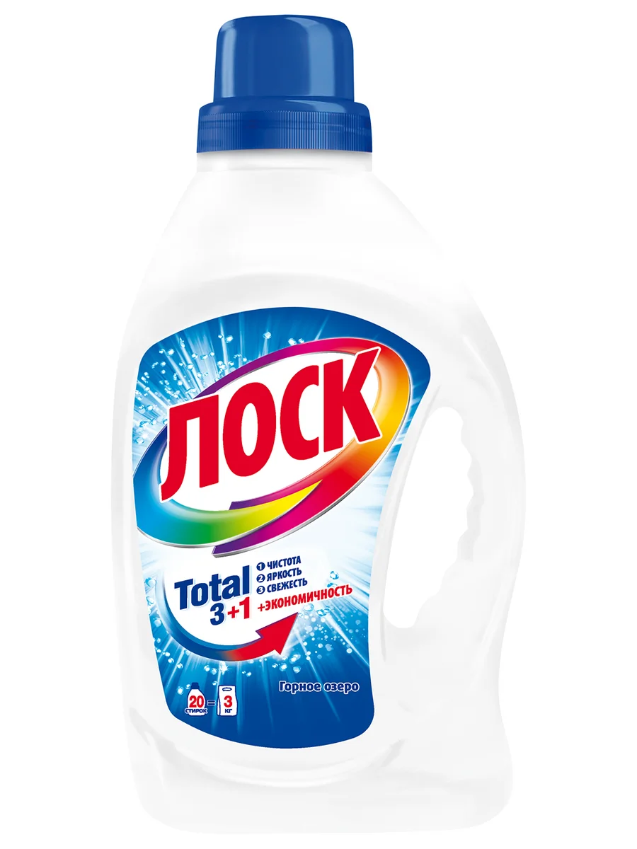 Жидкий порошок Лоск Горное озеро: сохраняет сияющую белизну белых вещей; справляется с различными видами пятен; дарит вещам свежий аромат; подходит для всех типов тканей, кроме шерсти и шелка; обеспечивают щадящее отношение к ткани во время стирки; растворяется даже в холодной воде и при стирке на коротких циклах; не оставляет разводов и полностью выполаскивается водой; не пылит, не просыпается и не накапливается в кювете стиральной машины.