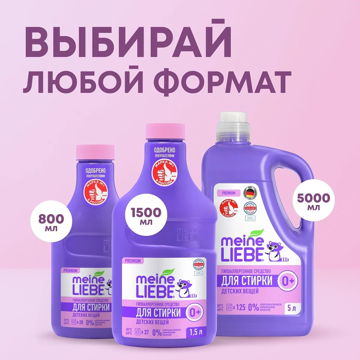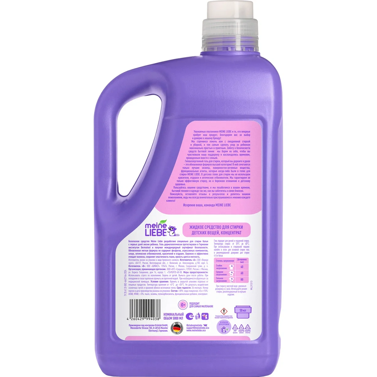 В формуле Meine Liebe сочетаются только лучшие энзимы, поверхностно-активные вещества и функциональные агенты. Обновленная мягкая формула не содержит красители, ароматизаторы, отдушки и оптические отбеливатели. В детских средствах мы никогда не используем фосфаты, агрессивные компоненты и хлор, что гарантирует бережное отношение к детскому здоровью.
