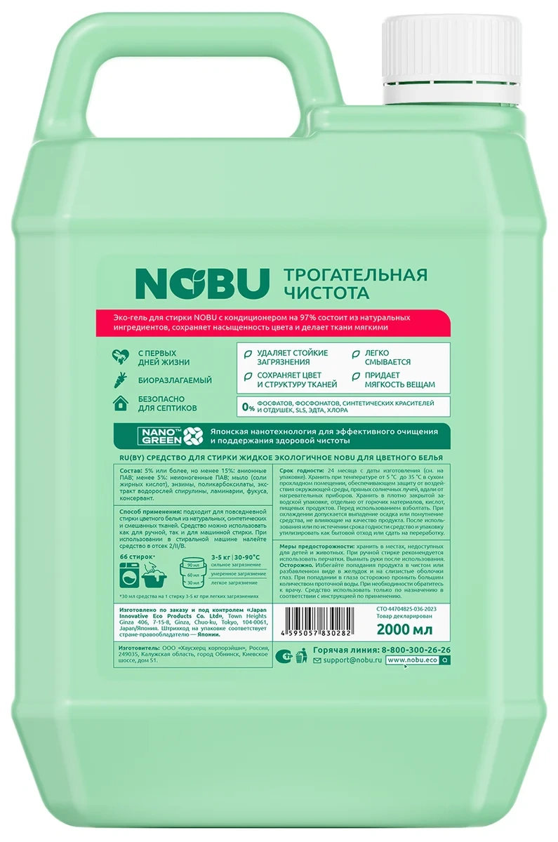 5% или более, но менее 15%: анионные ПАВ; менее 5%: неионогенные ПАВ, поликарбоксилаты, фосфонаты, энзимы, ароматизирующая добавка, оптический отбеливатель, консервант, краситель.