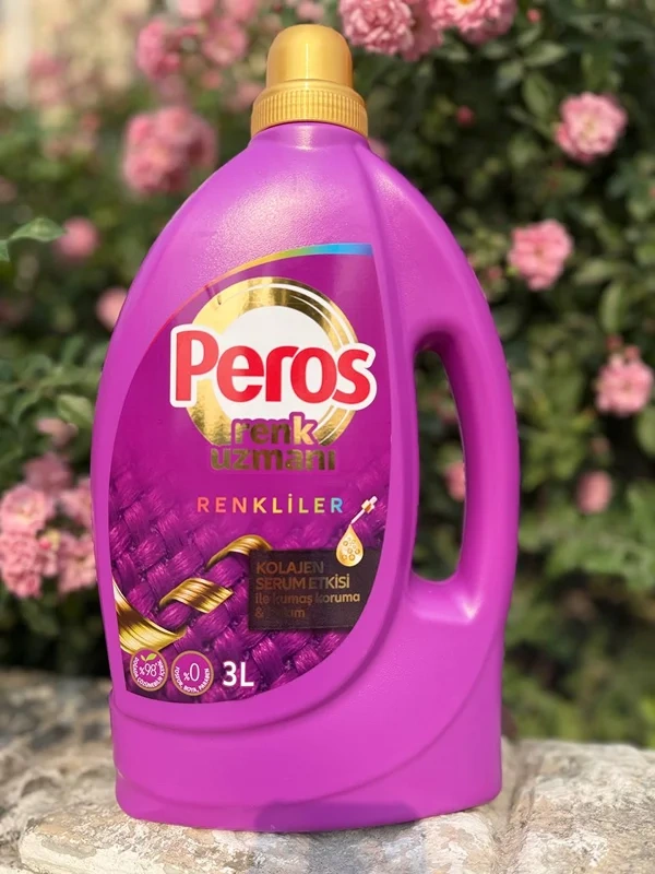 Peros Концентрированный гель для стирки цветного белья и одежды бережно ухаживает за вашими вещами, сохраняя их насыщенный цвет и яркость. Гель подходит для деликатной стирки, аккуратно удаляет пятна и грязь. Обновленная формула жидкого порошка подходит для ручной и автоматической стирки (автомат). Средство подходит для всех типов тканей. Полностью вымывается без следов, оставляя приятный прилив свежести чистых вещей.